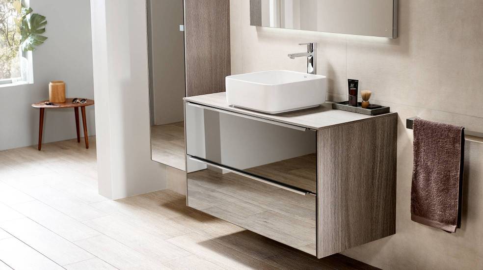 La sophistication des matériaux et des formes définit Inspira en sa qualité de collection essentiellement basée sur le design et sur la fonctionnalité. On y retrouve des vasques extrêmement fines en Fineceramic®, d’un miroir au tain foncé, mais aussi un éclairage intérieur qui se déclenche grâce à un détecteur de mouvement, ainsi que des finitions innovantes en chêne citadin texturé ou en chêne citronné sont quelques-unes des clés d’une collection qi est conçue pour les amoureux du design minimaliste et des petits détails.
