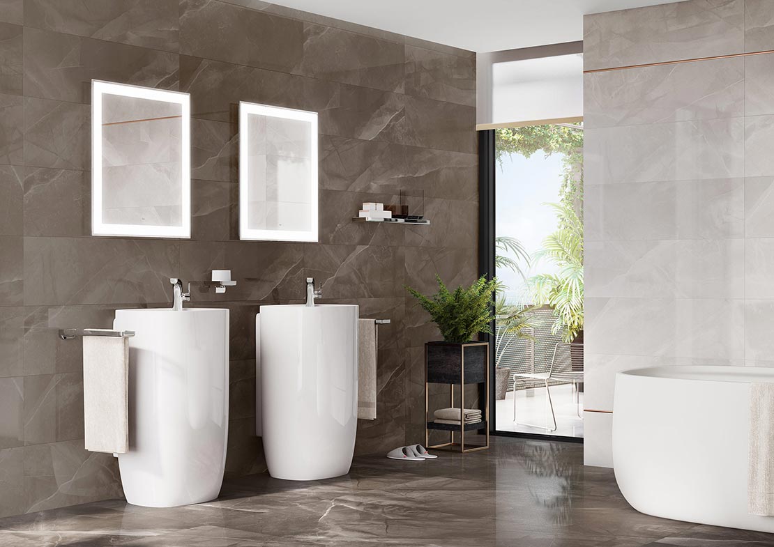 La porcelaine vitrifiée est le matériau hygiénique par excellence, car elle n’absorbe pas l’eau en raison d’une porosité nulle qui fait qu’elle n’accumule pas l’humidité, ce qui empêche la croissance des bactéries. En plus, grâce à son émail exclusif, la porcelaine vitrifiée de Roca conserve son éclat et ses propriétés intactes malgré l’utilisation de désinfectants ou des abrasifs. D’ailleurs, un processus de recherche continu a permis à Roca de développer des matériaux innovants qui améliorent la porcelaine vitrifiée traditionnelle avec des designs rénovés et des performances accrues. Avec une composition en porcelaine à 100 %, la Fineceramic® et la Senceramic® garantissent une surface zéro – pores parfaitement étanche à l’humidité. Les délicats lavabos et toilettes fabriqués avec la Fineceramic® sont 40 % plus légers et 30 % plus résistants, avec des surfaces homogènes et des angles arrondis, empêchant toute accumulation des saletés. Quant à la Senceramic®, elle permet de fabriquer des receveurs de douche hautement antidérapants qui allient design et nouvelles textures, sans pour autant renoncer aux excellentes propriétés hygiéniques de la porcelaine vitrifiée.
