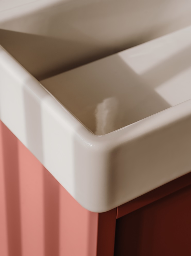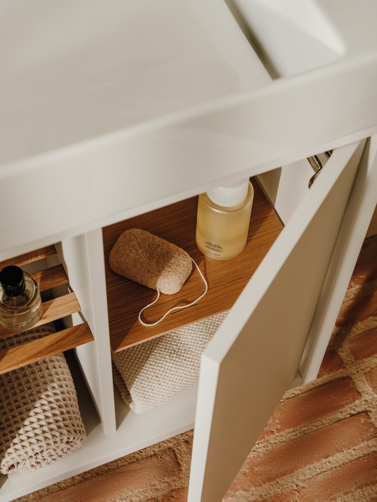 Les tiroirs sont conçus pour une fonctionnalité maximale, et l’utilisation d’un siphon inclus à l’arrière du lavabo permet de disposer d’un grand espace pour de multiples options de rangement. Les meubles Tura sont disponibles avec un tiroir et une niche inférieure, deux tiroirs ou des versions asymétriques avec deux tiroirs et des niches latérales.